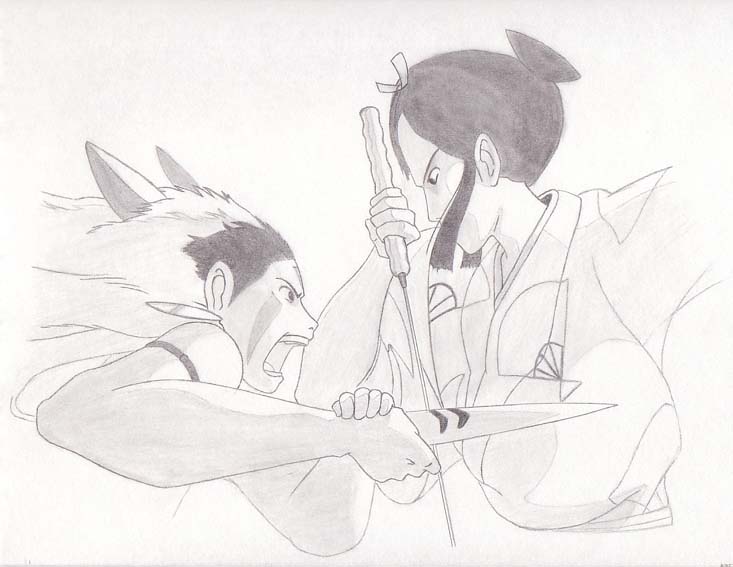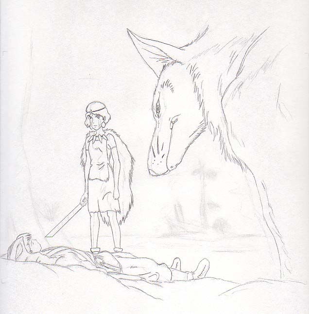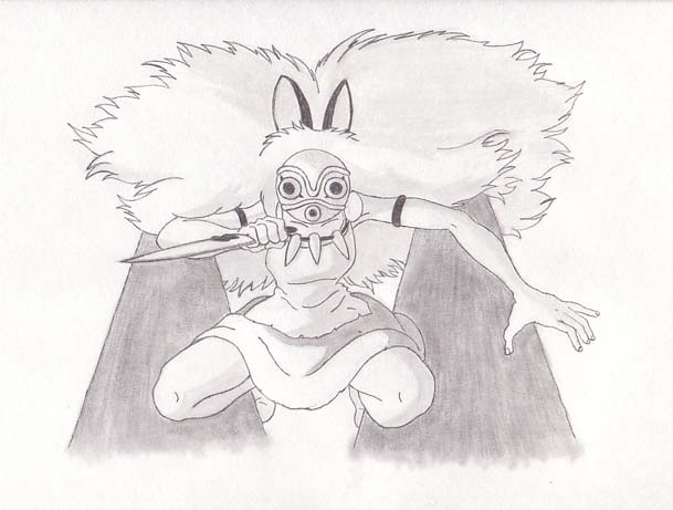 San putting on the Crystal Dagger given to her by Ashitaka.